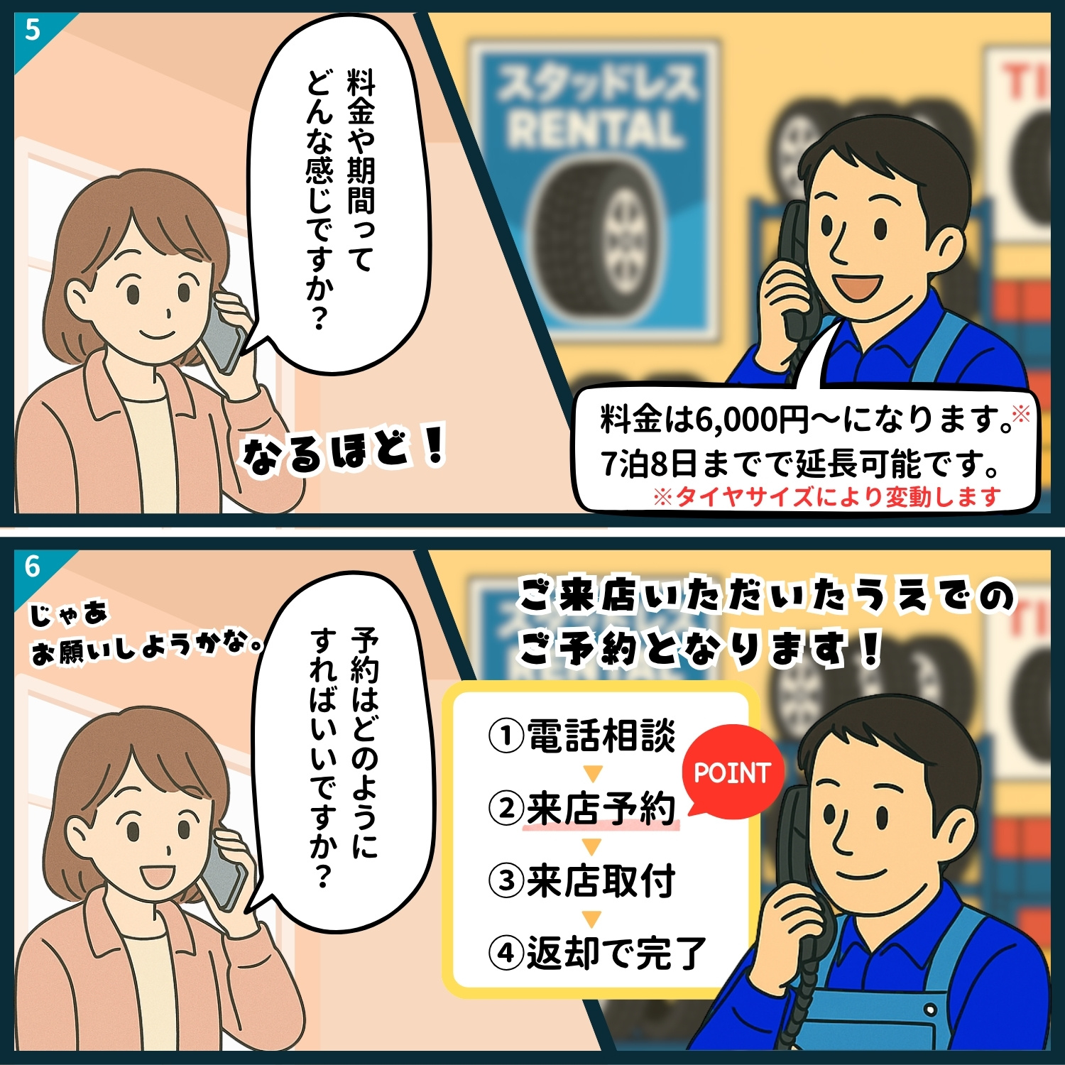 ③ 返却予定日に再来店(お客様のタイヤを再装着/レンタル品ご返却)
